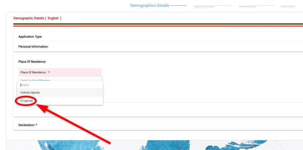 • Choose “In Uganda” if you reside in Uganda and Outside Uganda if you currently live in the diaspora.