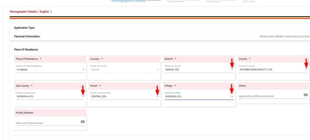 Be sure to choose your district, county, sub-county, and parish from the available drop-down menus.